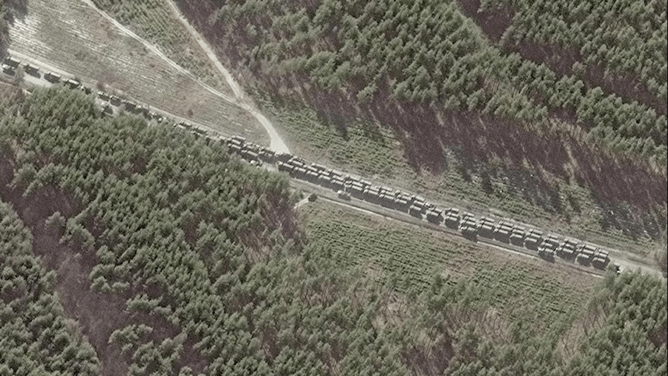 Inte en chans att dessa fordon på bilden är i rörelse över några få kilometer i timmen. Kan vara maskirovka eller en rast för att äta, pissa och skita. Eller så har det blivit fordonsstopp och/eller trafikstockning längre fram, dock syns denna i så fall inte på bilden. Dessutom så finns det inga stridsvagnar i kolonnen vad jag kan se i alla fall. Den består på bilden troligtvis av underhållsfordon, ammunitionsfordon och/eller av personaltransportfordon. Ni vet bäst hur ration stridsfordon/underhållsfordon ser ut. Men den ligger kanske runt fifty-fifty.
